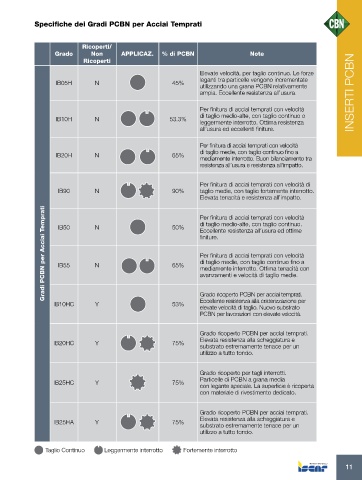 Grado Ricoperti/ APPLICAZ. % di PCBN Note