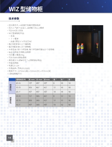 •WIZ 型储物柜包含: