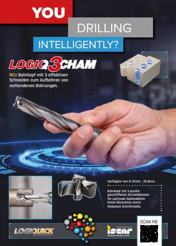 NEU Bohrkopf mit 3 effektivenSchneiden zum Aufbohren vonvorhandenen Bohrungen.www.isca r.comYOUDRILLINGSCAN MEBohrkopf mit 3 positivgeschliffenen Schneidkantenf%u00fcr optimale Sp%u00e4neabfuhrKeine R%u00fcstzeiten durchModulare Schnittstelle.Verf%u00fcgbar von %u00d8 12mm - 25,9mmLOGI 3CHAMINTELLIGENTLY?