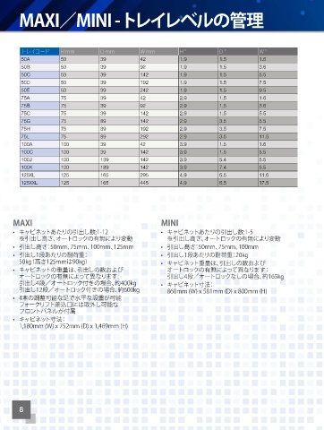 50kg(高さ125mmは90kg) • キ ャビネッ ト重量は、引出しの数および
