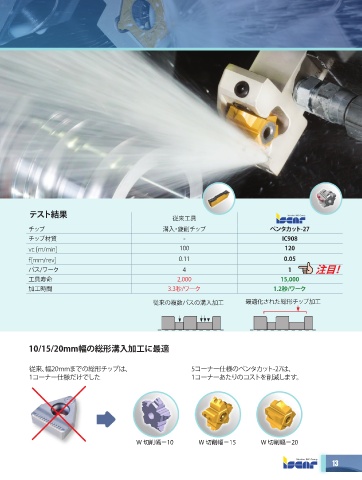 従来、幅20mmまでの総形チップは、 5コーナー仕様のペンタカット-27は、