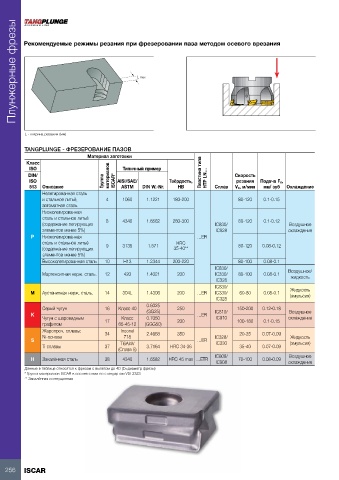 ISO                       Группа   ISCAR*  AISI/SAE/  Твёрдость,   HTP LN…  резания   Подача Fz,