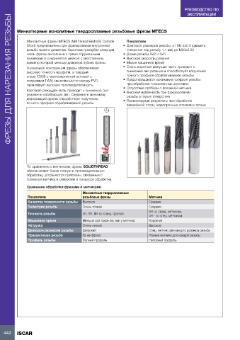 Монолитные фрезы MTECS (Mill Thread Endmills Carbide Показатели