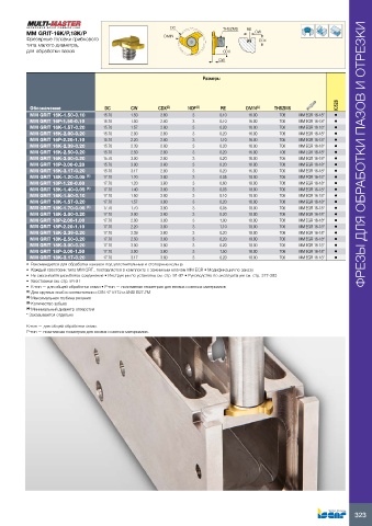 MM GRIT 16K-2.50-0.20 15.70 2.50 2.80 3 0.20 16.00 T06 MM EGR 16-18* • ФРЕЗЫ ДЛЯ ОБРАБОТКИ ПАЗОВ И ОТРЕЗКИ