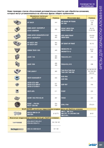 обработки алюминия      Страница         Обозначение фрез        Страница