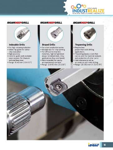 • Range: 16-40 mm (.63-1.57”) an experienced operator accurate as with solid drilling