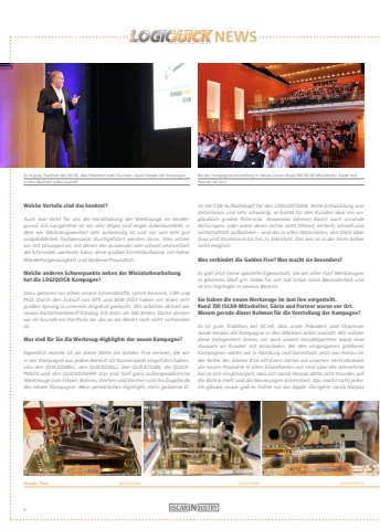 NEWSWelche Vorteile sind das konkret?Auch hier steht f%u00fcr uns die Handhabung der Werkzeuge im Vordergrund. Ein Langdreher ist ein sehr %u00f6liges und enges Arbeitsumfeld, in dem ein Werkzeugwechsel sehr aufwendig ist und nur von sehr gut ausgebildetem Fachpersonal durchgef%u00fchrt werden kann. Hier setzen wir mit L%u00f6sungen an, mit denen der Anwender sehr schnell und einfach die Schneiden wechseln kann, ohne gro%u00dfen Einstellaufwand, mit hoher Wiederholgenauigkeit und bedienerfreundlich. Welche anderen Schwerpunkte neben der Miniaturbearbeitung hat die LOGIQUICK-Kampagne?Dazu geh%u00f6ren vor allem unsere Schneidstoffe, sprich Keramik, CBN und PKD. Durch den Zukauf von NTK und BSW 2023 haben wir einen sehr gro%u00dfen Sprung in unserem Angebot gemacht. Wir arbeiten aktuell am neuen Hartschneidstoff-Katalog mit mehr als 300 Seiten. Damit decken wir im Grunde ein Portfolio ab, das so am Markt noch nicht vorhanden ist. Was sind f%u00fcr Sie die Werkzeug-Highlights der neuen Kampagne? Eigentlich m%u00fcsste ich an dieser Stelle die Golden Five nennen, die wir in der Kampagne aus jedem Bereich als Namenspate eingef%u00fchrt haben, also den QUICKDMILL, den QUICKDRILL, den QUICKTURN, die QUICKPENTA und den QUICKDOGRIP. Das sind f%u00fcnf ganz au%u00dfergew%u00f6hnliche Werkzeuge zum Fr%u00e4sen, Bohren, Drehen und Stechen und die Zugpferde der neuen Kampagne. Mein pers%u00f6nliches Highlight, mein goldenes Ei, ist der F3B-Aufbohrkopf f%u00fcr den LOGIQ3CHAM. Seine Entwicklung war zeitintensiv und sehr schwierig, er bietet f%u00fcr den Kunden aber ein unglaublich gro%u00dfes Potenzial. Anwender k%u00f6nnen damit auch unrunde Bohrungen, oder wenn deren Achse nicht stimmt, einfach, schnell und wirtschaftlich aufbohren %u2013 und das in allen Materialien, von Stahl %u00fcber Guss und Aluminium bis hin zu Edelstahl. Das war so in der Form bisher nicht m%u00f6glich.Was verbindet die Golden Five? Was macht sie besonders?Es gibt jetzt keine spezielle Eigenschaft, die bei allen f%u00fcnf Werkzeugen in gleichem Ma%u00df gilt. Jedes f%u00fcr sich hat schon seine Besonderheit und ist ein Highlight in seinem Bereich.Sie haben die neuen Werkzeuge im Juni live vorgestellt. Rund 700 ISCAR-Mitarbeiter, G%u00e4ste und Partner waren vor Ort. Warum gerade dieser Rahmen f%u00fcr die Vorstellung der Kampagne? Es ist gute Tradition bei ISCAR, dass unser Pr%u00e4sident und Chairman Jacob Harpaz die Kampagne in den M%u00e4rkten selbst ausrollt. Wir nutzen diese Gelegenheit immer, um auch unsere Handelspartner sowie eine Auswahl an Kunden mit einzuladen. Bei den vergangenen gr%u00f6%u00dferen Kampagnen waren wir in Hamburg und Darmstadt, jetzt war Hanau an der Reihe. Bei diesem Kick-off-Event stellen wir unserem Vertriebsteam die neuen Produkte in allen Einzelheiten vor. Und %u00fcber die Jahrzehnte hat es sich eingeb%u00fcrgert, dass sich Jacob Harpaz daf%u00fcr acht Stunden auf die B%u00fchne stellt und die Neuerungen pr%u00e4sentiert. Das macht nicht jeder. Ich glaube, sowas gab es fr%u00fcher nur bei Apple. %u00dcbrigens: Jacob Harpaz Es ist gute Tradition bei ISCAR, dass Pr%u00e4sident und Chairman Jacob Harpaz die Kampagnein den M%u00e4rkten selbst ausrollt.Bei der Kampagnenvorstellung in Hanau waren Rund 700 ISCAR-Mitarbeiter, G%u00e4ste und Partner vor Ort.Golden Five: QUICKDMILL QUICKDRILL QUICKPENTA 6
