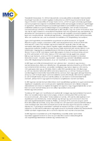 szembeni embergót jelentenek. Következésképpen az IMC irányelve, hogy nem üzletel Venezuelával, illetve