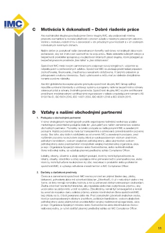 rešpektujúcich a profesionálnych vzťahov. Spoločnosť IMC sa zaväzuje predchádzať prípadom